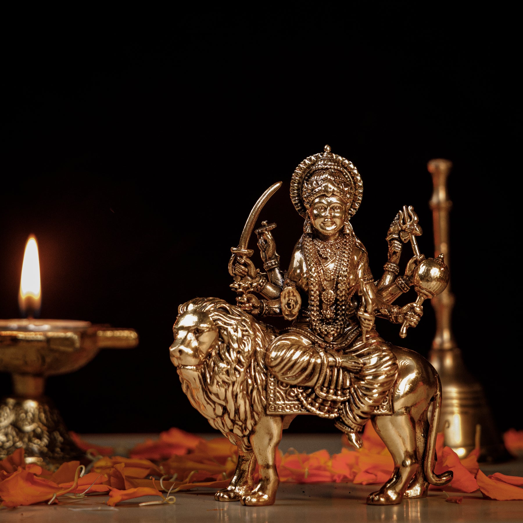 Pure Brass Goddess Durga Idol on Lion | Maa Durga Sherawali Murti for Puja, Protection & Divine Strength